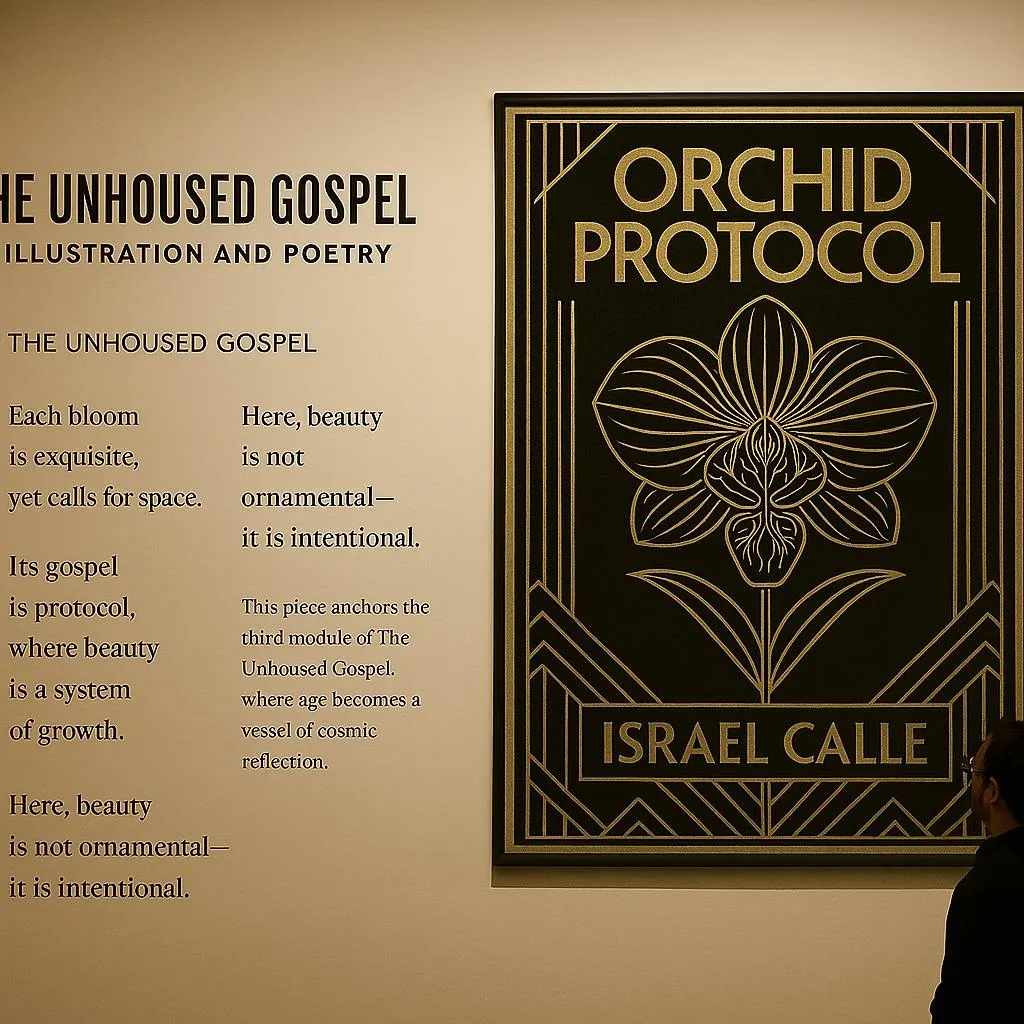 Title of the Work: Orchid Protocol Medium: Art Deco digital cover design Author: Israel Calle Curatorial Framework: THE UNHOUSED GOSPEL